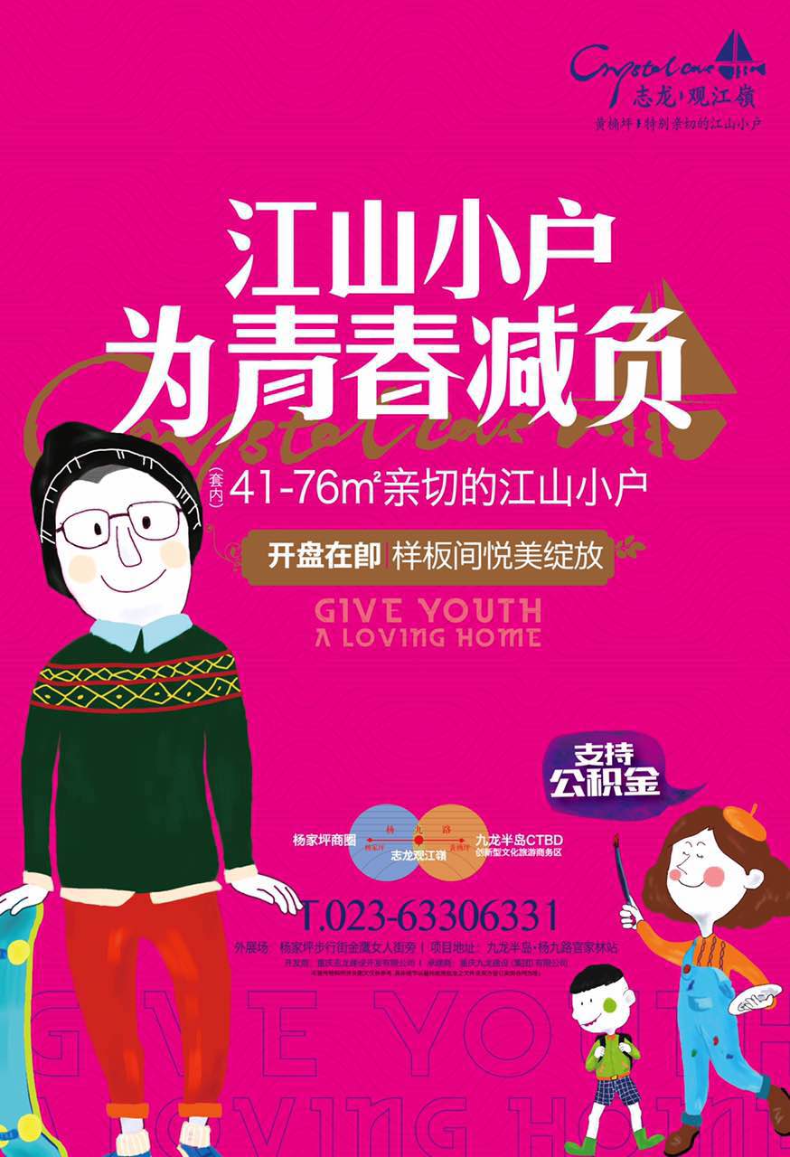志龙·观江嶺项目位于九龙坡区铁路二村20号官家林地区,宗地编号:九龙坡区大杨石组团W分区W07-4-1/02号。介于九龙坡区黄桷坪和滩子口两个人口密集居住区域之间,离杨家坪商圈也只有几公里。景观效果极佳;背靠广厦城,左右牵手黄桷坪和滩子口两大社区,超市、医院、学校等生活配套设施借助两个周边社区;项目地段位于杨渡路旁,公共交通便捷。